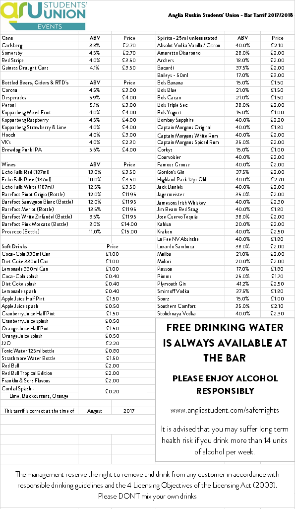 We are constantly working to update our menu to keep up with Students' tastes but some things just never go out of fashion. Have a look at our drinks menu below before you come and see us!